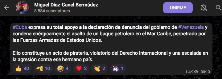 La declaración tiene lugar tras el post del presidente cubano donde expresó el total apoyo de la isla a la denuncia del gobierno venezolano y condenó enérgicamente el asalto de un buque petrolero en el Mar Caribe, perpetrado por las Fuerzas Armadas de Estados Unidos.